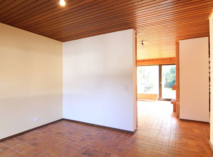 Bereits beim Betreten des Hauses über die Diele mit Einbau-Garderobenschrank und angrenzendem Gäste-WC offenbart sich das offene Wohngefühl. Von der Küche aus gelangen Sie in das Esszimmer, von dort aus in das große unterteilte Wohn- und Kaminzimmer. Die vorhandene Einbauküche können Sie gerne durch Ihre eigene Küche ersetzen. Sowohl vom Wohnbereich, als auch vom Kaminzimmer - mit gemauertem offenen Kamin - aus gelangen Sie auf die Terrasse und den eingewachsenen Garten.