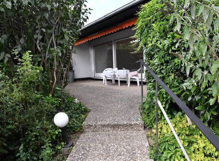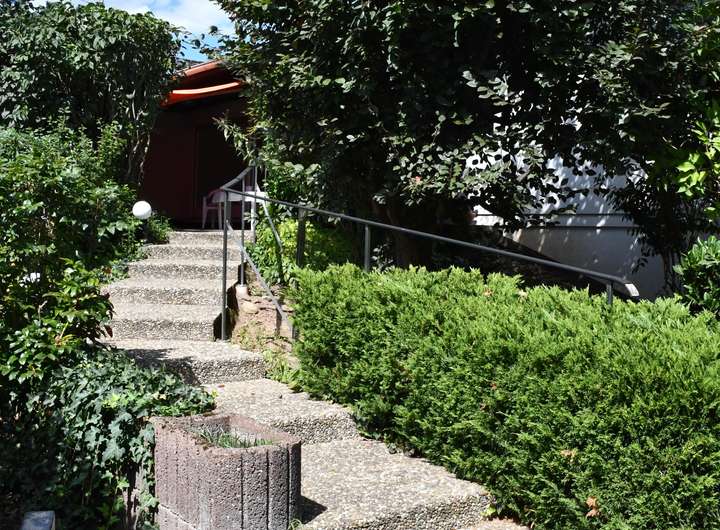 Von der Terrasse aus erreichen Sie über eine Treppe den schön gestalteten Garten. Hinter dem Haus besteht die Möglichkeit zum Anbau von Salat, Gemüse bzw. Beeren…