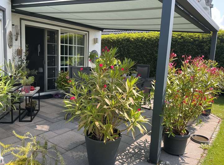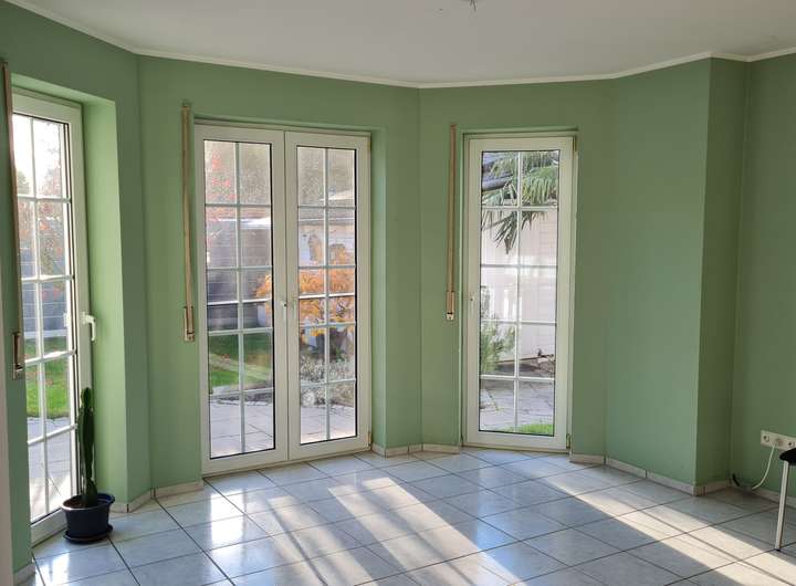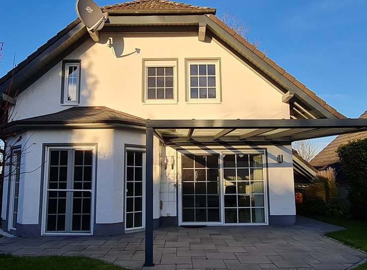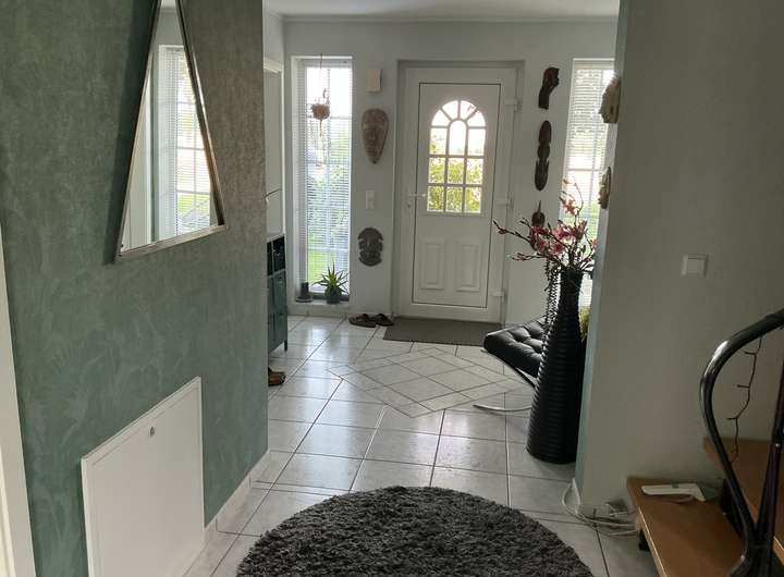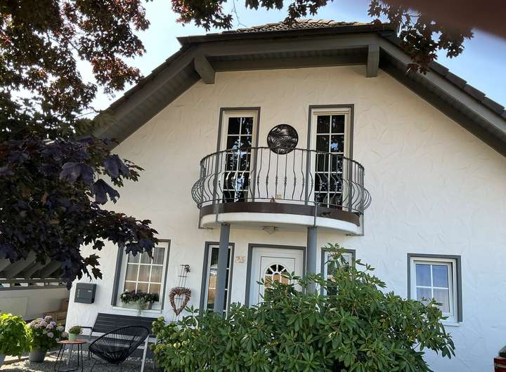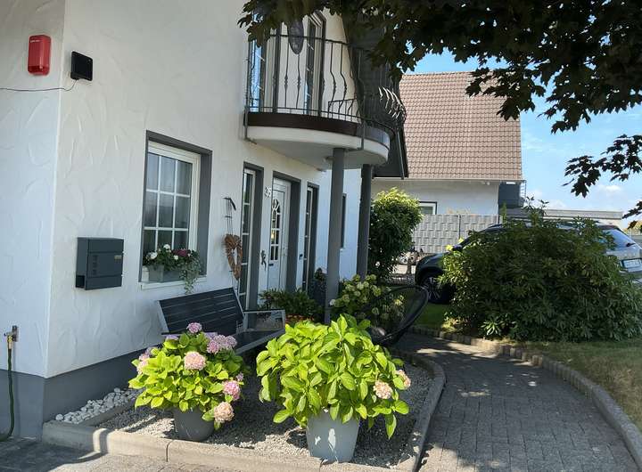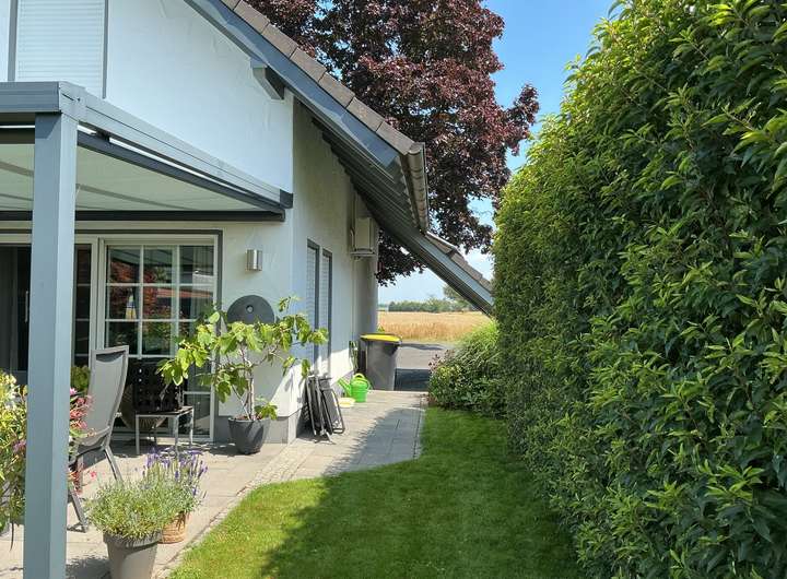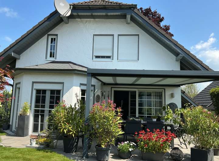 Dieses freistehende Einfamilienhaus mit ca. 122 m² Wohnfläche und 355 m² Grundstücksfläche wurde 1996 erbaut und bietet Ihnen 4 Zimmer sowie 1 Badezimmer (modernisiert 2022). Zusätzlich ist eine Abstellkammer, ein Hauswirtschaftsraum und ein Ankleidezimmer vorhanden. Das Haus ist barrierefrei zugänglich und verfügt optional über eine Einbauküche ohne Geräte. Ein Gäste-WC ist ebenfalls vorhanden. Das Haus ist ab dem 01.03.2026 verfügbar. Haustiere sind in diesem Objekt nicht gestattet. Das Hauptschlafzimmer verfügt über eine Klimaanlage. Im Garten befindet sich eine Terassenüberdachung und ein Gartenhaus, welches zusätzlichen Platz bietet. Zudem ist ein Balkonkraftwerk installiert. Drei Parkplätze, davon einer überdacht, bieten genügend Raum für Ihre Fahrzeuge. Gelegen an einer Privatstraße am Ortsrand bietet das Objekt freie und unbebaute Sicht auf der Vorderseite.