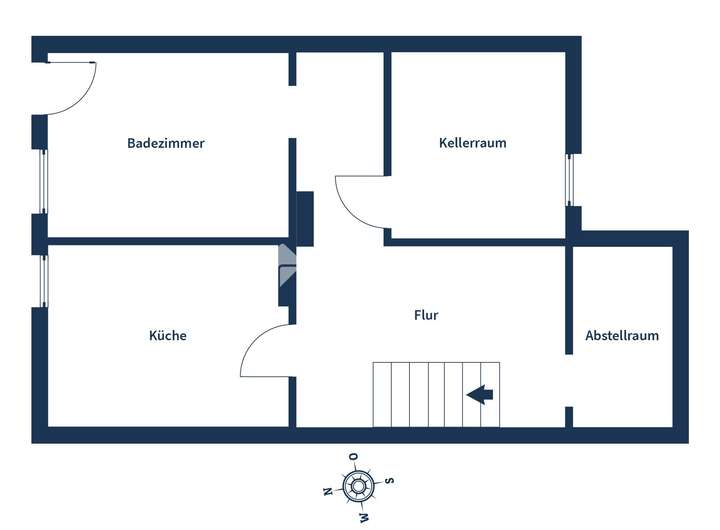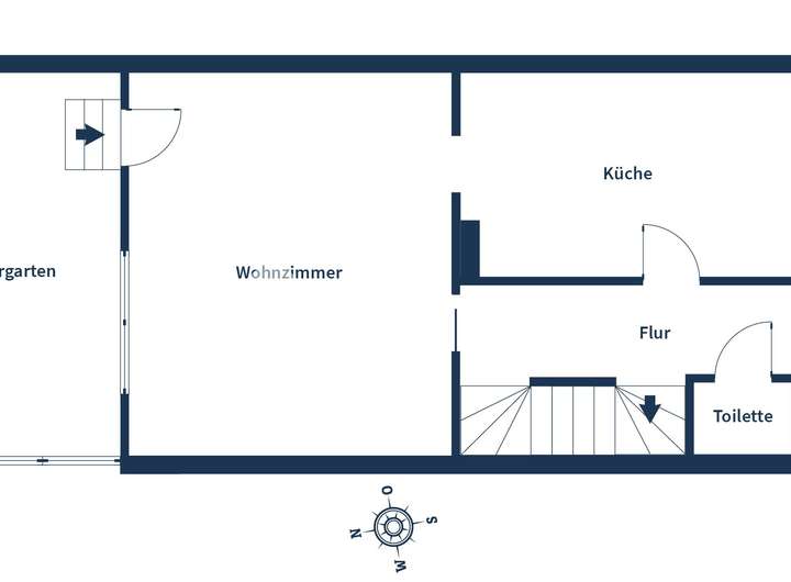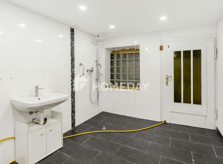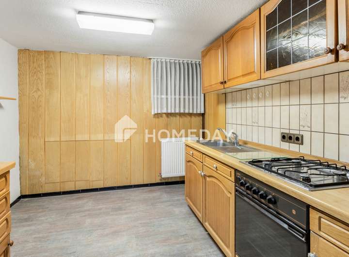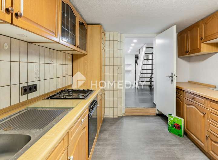 Die Küche im Erdgeschoss bietet ausreichend Platz und klare Strukturen, ideal zur individuellen Gestaltung oder Modernisierung nach persönlichem Geschmack. Eine praktische Gäste-Toilette rundet das Erdgeschoss ab.