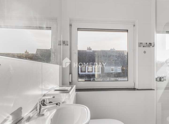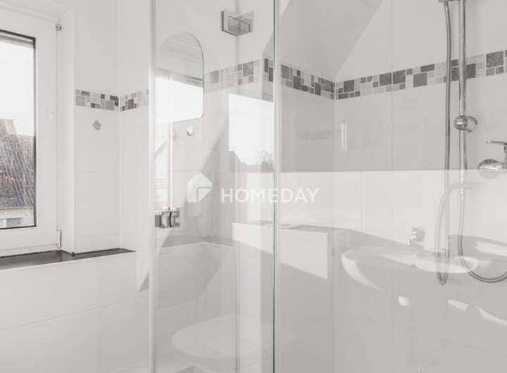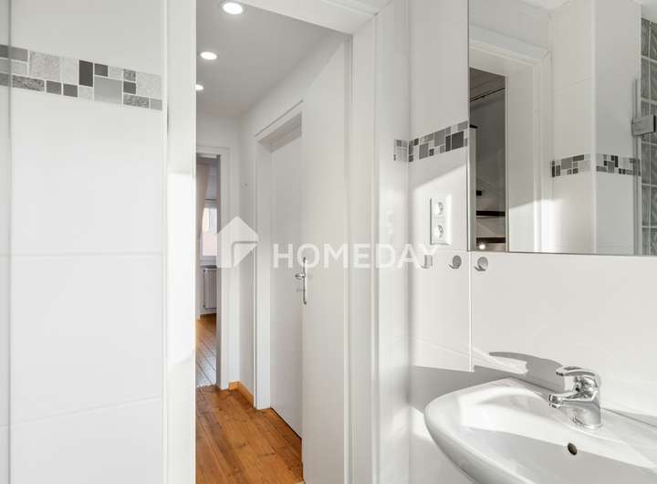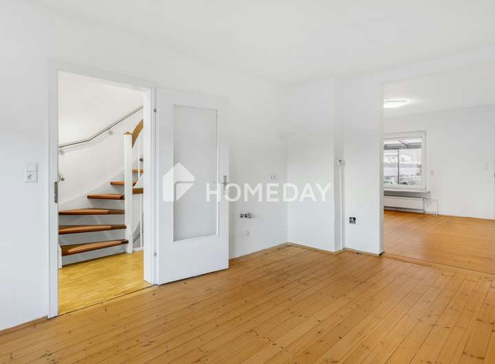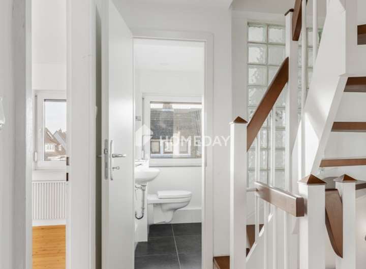 Über die erneuerte Treppe erreichen Sie das Obergeschoss. Hier erwarten Sie zwei gemütliche Schlafzimmer, die dank cleverer Grundrissgestaltung Ruhe und Privatsphäre bieten. Das moderne Tageslichtbad mit geschmackvoller Ausstattung sorgt für einen frischen Start in den Tag.