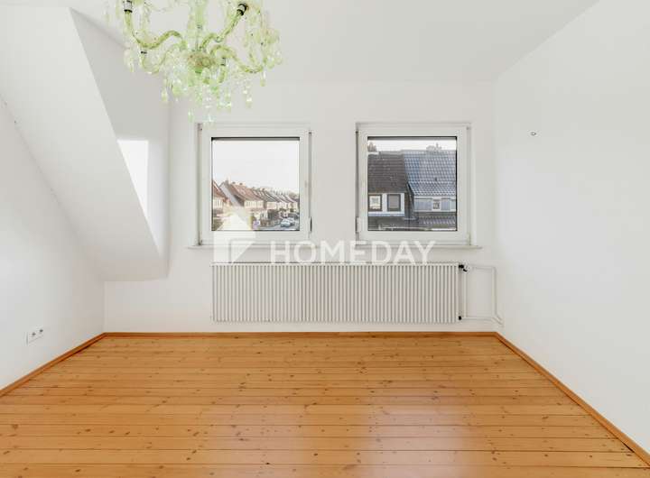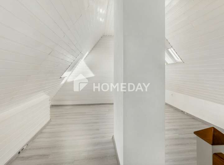 Das ausgebaute Dachgeschoss aus dem Jahr 1969 beeindruckt mit einem großzügigen Raum, der sich perfekt als Schlafzimmer oder Arbeitszimmer eignet. Die helle Gestaltung und die harmonische Dachstruktur machen diesen Bereich zu einem individuellen Rückzugsort.
