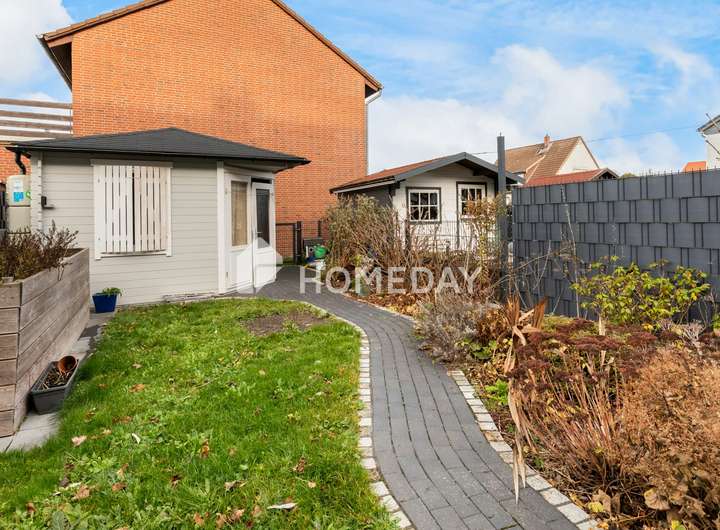 Der pflegeleicht angelegte Garten ist ein Ort zum Durchatmen. Auf dem rund 177 Quadratmeter großen Grundstück erwarten Sie ein geschützter Gartenbereich mit Hochbeeten und gepflegten Wegen, eine gemütliche Gartenlaube sowie ein sonniger Platz zum Spielen, Entspannen oder Gärtnern. Der Zaun sorgt dabei für eine angenehm private Atmosphäre.
