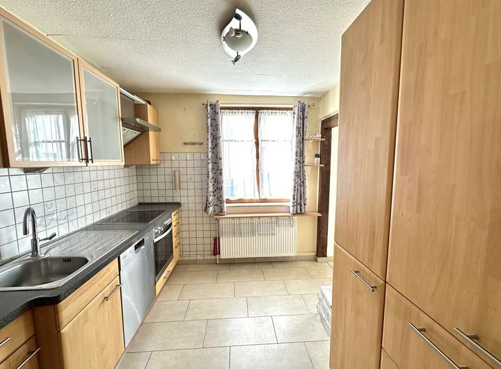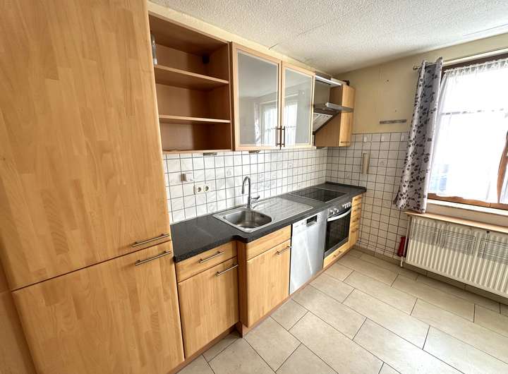 Im Erdgeschoss befindet sich die Einbauküche mit anschließendem Esszimmer, ein weiteres Zimmer sowie ein Gäste-WC.