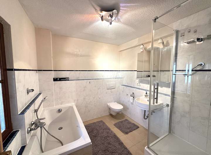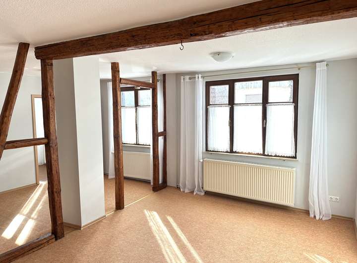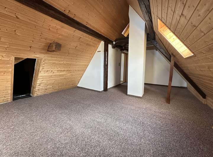 Das Obergeschoss besteht aus einem modernen Bad mit Wanne und Dusche, 3 weiteren Zimmern sowie einem kleinen Balkon. Über einen kleinen Flur gelangt man in einen großen unbeheizten Raum, der sich über der Hofeinfahrt befindet und als Speicher dient.