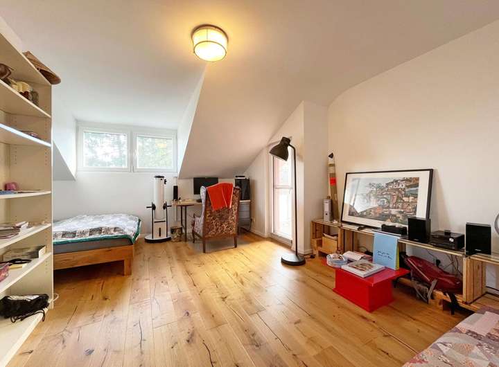 Über eine elegante Treppe erreichen Sie das Obergeschoss. Hier finden Sie insgesamt drei individuell nutzbare Räume mit Flächen von 12 m², 18 m² und 20 m² vor.