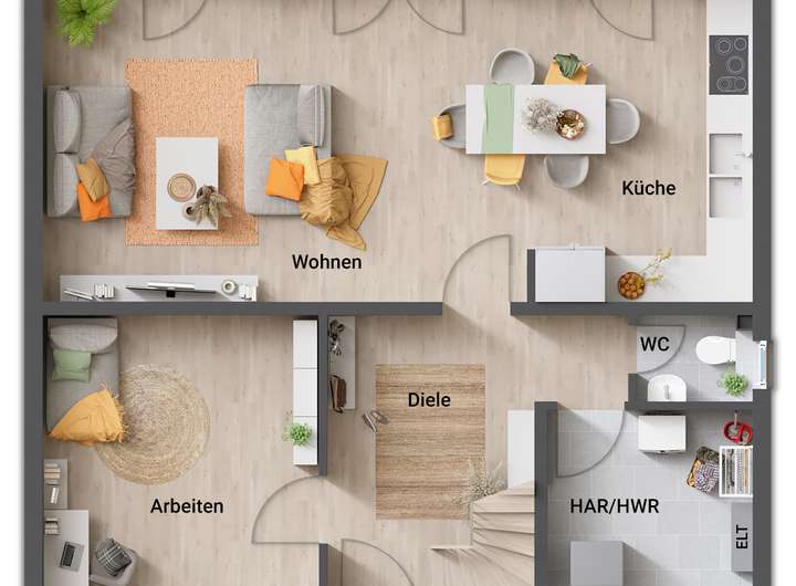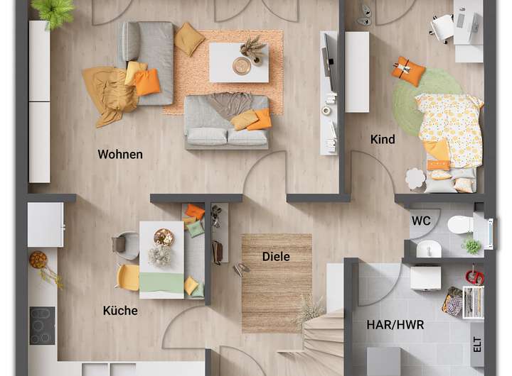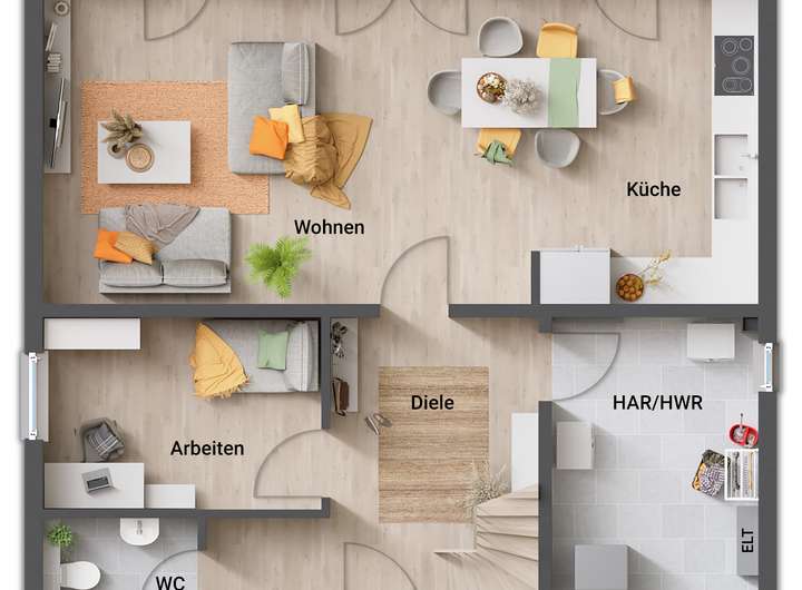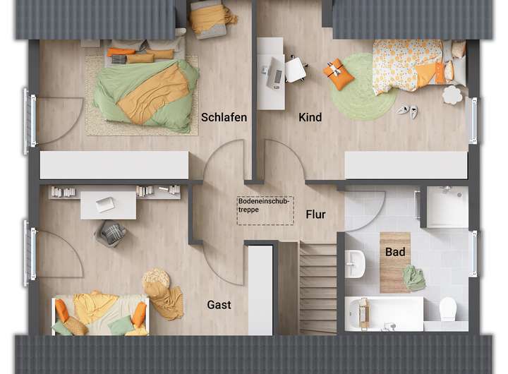 • Fußbodenheizung: Warme Füße? Auch die Fußbodenheizung ist inklusive. Sie steigert nicht nur den Wert Ihres Hauses, sondern sorgt ganz nebenbei noch für echtes Wohngefühl.