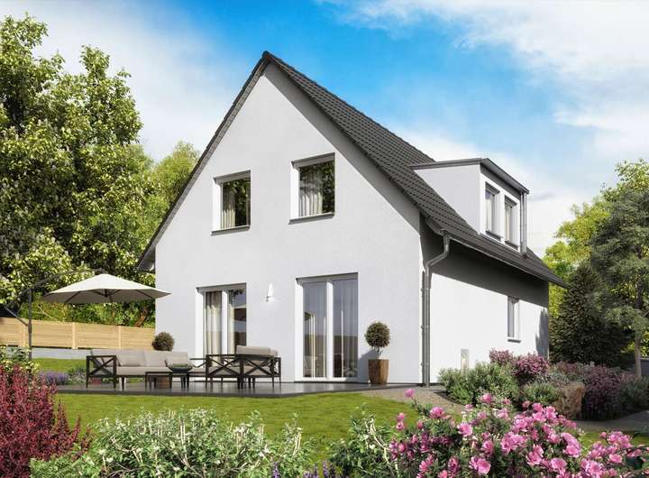 Der dargestellte Haustyp dient lediglich als unverbindlicher Bauvorschlag. Selbstverständlich können Sie auf dem vorhandenen Grundstück – im Rahmen der geltenden baurechtlichen Vorgaben – jeden Haustyp realisieren, der Ihren Wünschen und Vorstellungen entspricht.