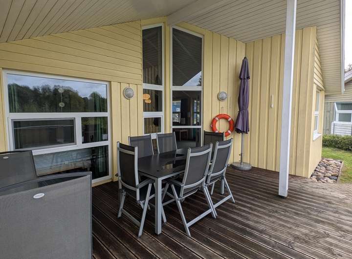 Die Terrasse mit traumhaftem Seeblick bietet die perfekte Kulisse für gemeinsame Stunden im Freien. Ein separater Abstellraum sorgt für praktische Ordnung, während die Holzrahmenbauweise für ein warmes, einladendes Ambiente sorgt.