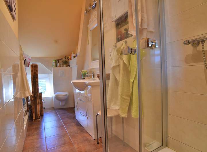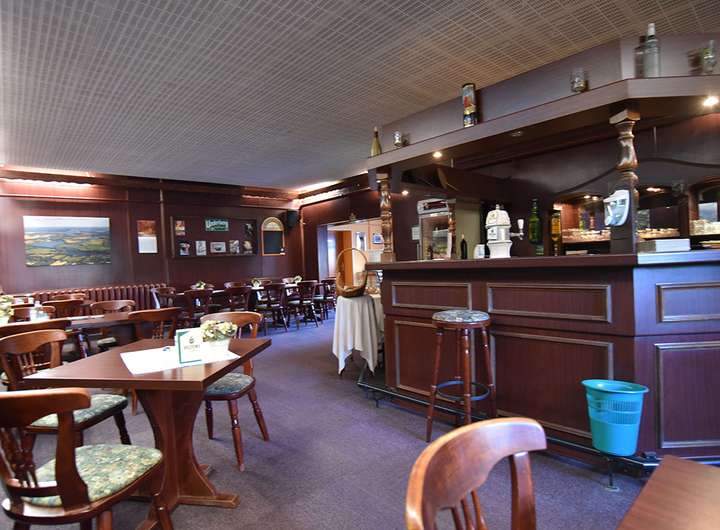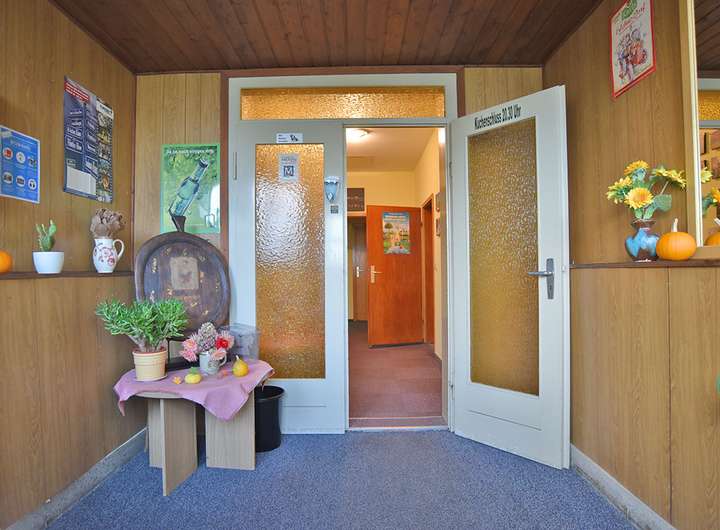 Im vorderen Grundstückbereich befindet sich das Wohnhaus und die Gaststätte, dahinterliegend der Pensionsbetrieb und die Kegelhalle samt eigenem Innenhof und einem idyllischen Gartenbereich.