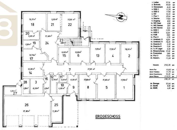 Im Erdgeschoss befindet sich eine ca. 267 m² große Gewerbeeinheit, die seit 1998 zuverlässig an das Land Niedersachsen als Polizeidienststelle vermietet ist. Die monatliche Nettokaltmiete beträgt hier 2.400,00 €. Aus Datenschutzgründen können leider keine Bilder der Dienststelle zur Verfügung gestellt werden.