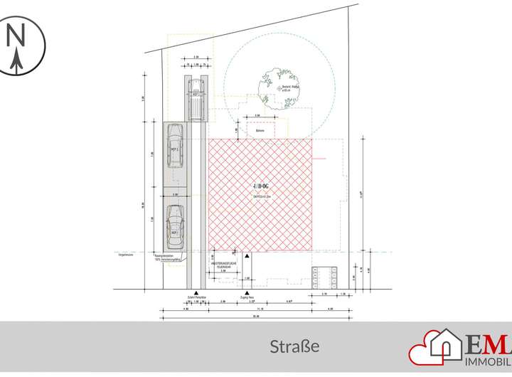 Baurecht: Für das Grundstück liegt eine Baugenehmigung für die Errichtung eines Mehrfamilienhauses mit einer Bruttogrundfläche von ca. 140 m², zwei Vollgeschossen, einem Dachgeschoss und einem Kellergeschoss vor. Für jede Wohnung ist ein fest zugeordneter Stellplatz geplant.