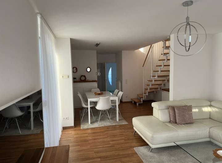 Dieses moderne und neuwertige Reiheneckhaus aus dem Jahr 2015 befindet sich in ruhiger und dennoch äußerst verkehrsgünstiger Lage von Bickenbach. Mit ca. 128 m² Wohnfläche, hochwertiger Ausstattung und voll möblierter Einrichtung bietet das Haus idealen Wohnkomfort – besonders für Personen, die beruflich bedingt häufig den Wohnort wechseln und eine sofort bezugsfertige Lösung suchen.