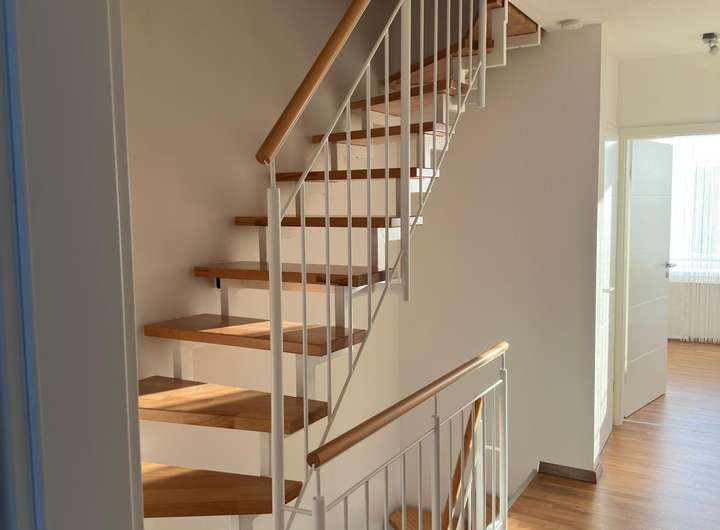 Das Haus überzeugt durch ein lichtdurchflutetes Treppenhaus, moderne Architektur und eine klare Raumaufteilung.