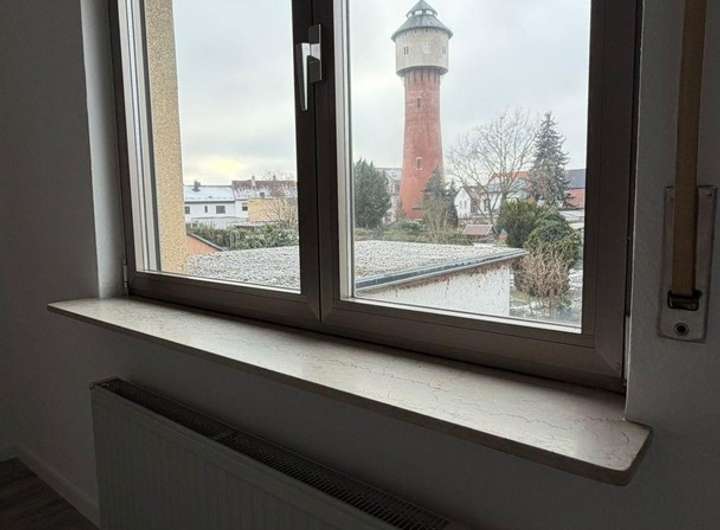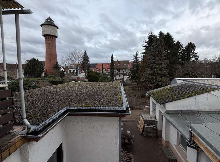 • Balkon im Obergeschoss mit schönem Blick auf den Wasserturm und in den Garten