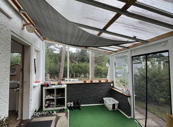 Einfamilienhaus mit 1,5 Geschossen, Wintergarten und Keller.