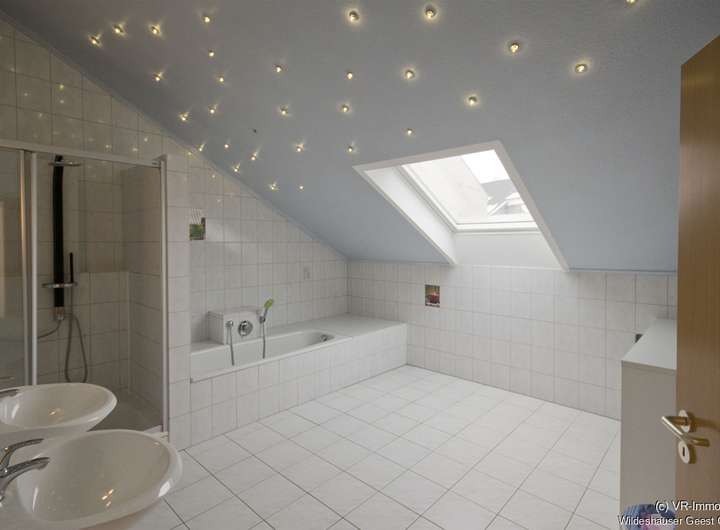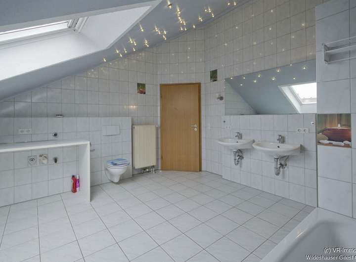 - Bad mit Waschbecken, Toilette, Dusche und Badewanne