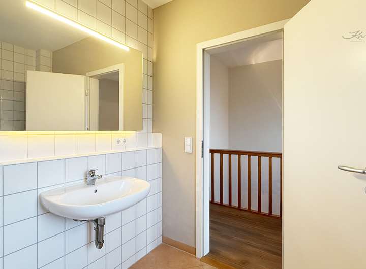 Das Erdgeschoss empfängt Sie mit einem offenen und lichtdurchfluteten Wohn- und Essbereich, der harmonisch in eine schöne, moderne Einbauküche übergeht. Praktisch für Familie und Gäste steht Ihnen hier auch ein Gäste-WC zur Verfügung. Ideal für Familie und Besucher bietet das Haus insgesamt vier Zimmer, darunter drei komfortable Schlafzimmer. Ein elegantes Badezimmer im Obergeschoss sorgt zudem für entspannende Wohlfühlmomente.