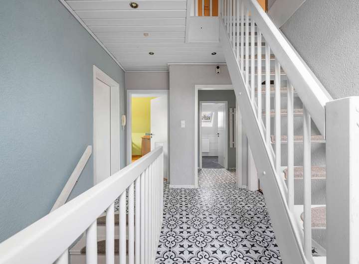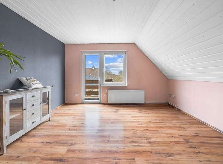 Das Obergeschoss ist als Einliegerwohnung ausgebaut. Mit einer optionaler Trennung ist eine Untervermietung denkbar. Es bietet 2 weitere Schlafzimmer, eine Küche inklusive Einbauküche und ein gemütliches Wohnzimmer mit Zugang zum Balkon, von dem Du den Sonnenaufgang genießen kannst.☀️ Das ausgebaute Dachgeschoss bietet zusätzlichen Raum mit einem weiteren Schlafzimmer, einem Büro und einem Abstellraum. Die Modernisierungen bringen hier das Potenzial der Immobilie zur Geltung und unterstreichen die spürbare Qualität des Hauses.