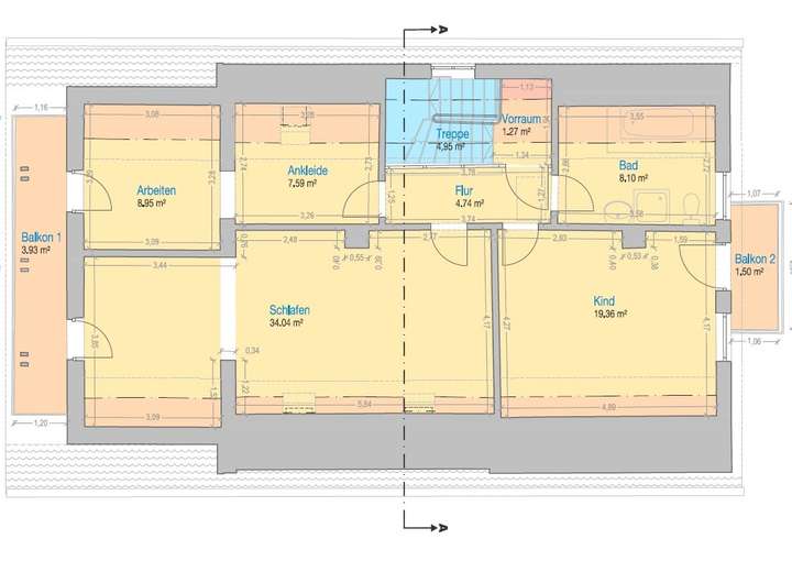 Bäder/WC: Zwei vollwertige Tageslichtbäder (jeweils mit Wanne und Dusche ausgestattet) sowie ein separates Gäste-WC.