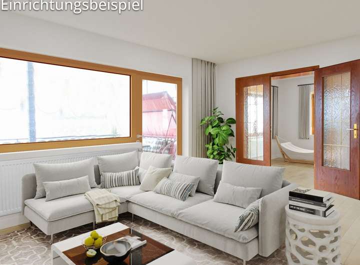 Die Architektur besticht durch eine klare Linienführung und eine funktionale Raumaufteilung. Während das Erdgeschoss als Zentrum des familiären Lebens fungiert, bietet das Obergeschoss durch die vorhandene Infrastruktur die Option, als autarke Einliegerwohnung genutzt zu werden.