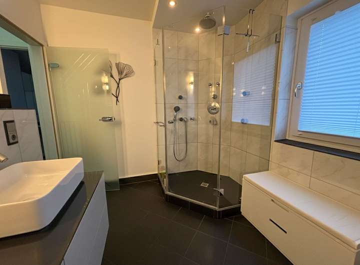 Das Haus ist voll unterkellert und mit einer Zentralheizungsanlage inklusive Warmwasserversorgung ausgestattet. Der Keller präsentiert sich modern, freundlich und äußerst gepflegt und bietet neben großzügigem Stauraum auch mit einer wohnraumähnlichen Nutzfläche ausreichend Platz für Hobby- oder Arbeitsbereiche. Auch hier finden Sie ein weiteres, modernes, innenliegendes Duschbad.