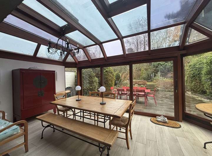 -großer Wohn-, Essbereich mit bodentiefen Fenstern und Zugang zum Wintergarten, Terrasse und wunderschön angelegten Garten