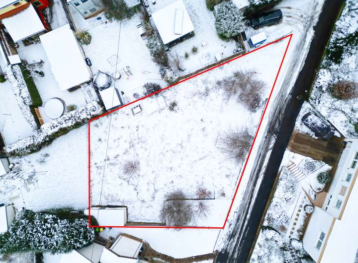 Das Grundstück verfügt über eine Gesamtfläche von ca. 584 m² und bietet mit einer Straßenfront von ca. 30 Metern vielfältige Bebauungsmöglichkeiten. Durch das leichte Gefälle eignet sich das Grundstück ideal für eine moderne Architektur, z. B. mit Split-Level- oder Untergeschosslösung.