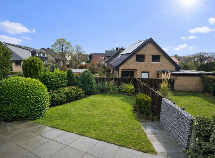 Der sonnige Garten in Südausrichtung lädt zum Entspannen ein und ist mit einer elektrischen Markise ausgestattet – perfekt für warme Sommertage.