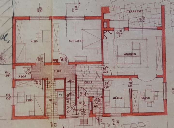Auf 240qm Wohnfläche verteilen sich 3 heterogene Wohnungen. Im Erdgeschoss die Hauptwohnung (Whng 1) mit ca. 141qm, im OG 2 Einheiten (Whng 2) mit ca. 69qm und eine weitere hier vollmöblierte (Whng 3) mit ca. 30qm (beide aktuell auf Zeit noch ca. 6 Monate bis Mitte 2027 vermietet). Whng 2 und Whng 3 verfügen jeweils über neu eingebaute Küchen.