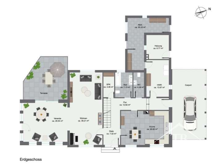 Auf der rechten Seite befindet sich ein großer Carport für Ihre Autos, aber auch für Wohnwagen, Wohnmobil etc. wurde auf der linken Seite eine Überdachung errichtet.