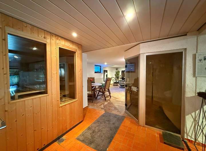 Entspannung finden Sie im eigenen Wellnessbereich mit Innenpool, Finnischer Sauna und einer separaten Dampfsauna, dem Ruhebereich und der Bar sowie der vorgelagerten Terrasse.