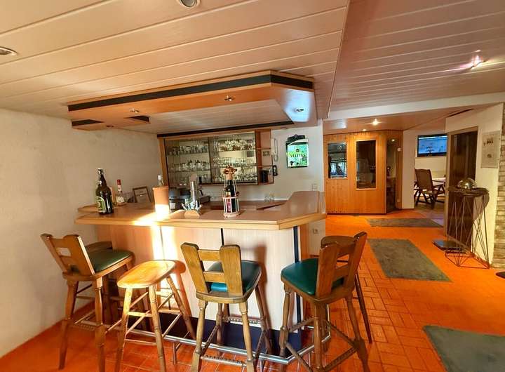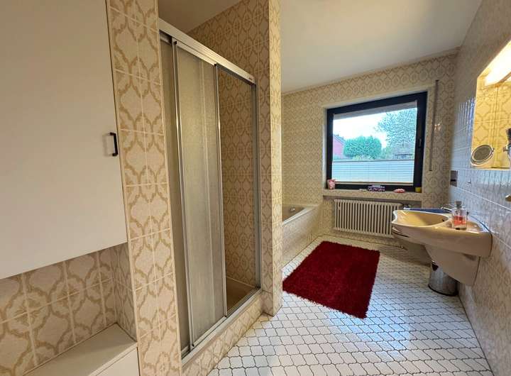 Repräsentatives, gepflegtes Wohnhaus mit Doppelgarage und großem Wellnessbereich in bevorzugter Lage. Das große Grundstück mit schönem Garten in Süd-Westausrichtung ist mit einem Sichtschutzzaun vor fremden Blicken geschützt. Insgesamt bietet das Haus absolut gehobenen Wohnkomfort, verteilt auf das Erdgeschoss mit großzügigem Wohn-Essbereich mit Kamin, verglaster Terrasse, Küche mit Einbauküche, Arbeitszimmer, Flur mit Garderobe, Gäste WC, Hauswirtschaftsraum und einem separaten Bereich mit Schlafzimmer und Bad mit Wanne, Dusche und WC. Im Dachgeschoss befinden sich ein Schlafbereich mit Ankleide, überdachtem Balkon und Bad mit Wanne, Dusche, Bidet und WC, Abstellraum sowie zwei Kinderzimmer mit Balkon und eigenem Duschbad mit WC.