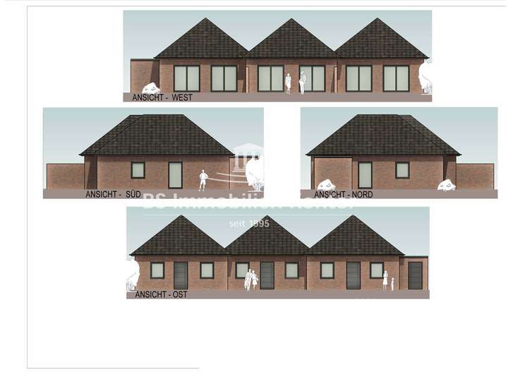 Zum Verkauf steht ein projektiertes Baugrundstück in der Gemeinde Großheide, Gemarkung Westerende, das sich besonders durch seine bereits vorliegende Baugenehmigung und die damit verbundene Möglichkeit eines kurzfristigen Baustarts auszeichnet. Geplant ist die Errichtung von insgesamt neun modernen Bungalows, verteilt auf drei Gebäude, wodurch ein überschaubares, zugleich aber wirtschaftlich äußerst attraktives Wohnprojekt realisiert werden kann. In Zeiten zunehmender Genehmigungsdauer bietet dieses Angebot einen entscheidenden Vorteil, da sämtliche planungsrechtlichen Voraussetzungen bereits erfüllt sind und unmittelbar mit der Bauausführung begonnen werden kann. Das rund 2.241 Quadratmeter große Grundstück ermöglicht die Schaffung einer gesamten Wohnfläche von etwa 806,63qm. Jeder der geplanten Bungalows verfügt über eine durchschnittliche Wohnfläche von circa 87 Quadratmetern und überzeugt durch eine zeitgemäße, funktionale Grundrissgestaltung. Das Konzept des ebenerdigen Wohnens entspricht einer stark nachgefragten Wohnform und bietet sowohl für Eigennutzer als auch für Mieter langfristige Attraktivität.Dieses Angebot richtet sich in besonderem Maße an Bauunternehmen, die auf der Suche nach einem genehmigten Grundstück sind, um freie Kapazitäten effizient auszulasten und ohne Verzögerung mit der Umsetzung eines klar definierten Bauprojekts zu beginnen. Gleichzeitig stellt das Projekt eine äußerst interessante Gelegenheit für Kapitalanleger dar, die Wohnraum für den eigenen Bestand schaffen und nachhaltig vermieten möchten. Neubau-Bungalows in barrierearmer Ausführung gelten als besonders wertstabil und sprechen eine breite Zielgruppe an, wodurch eine dauerhaft gute Vermietbarkeit gegeben ist.