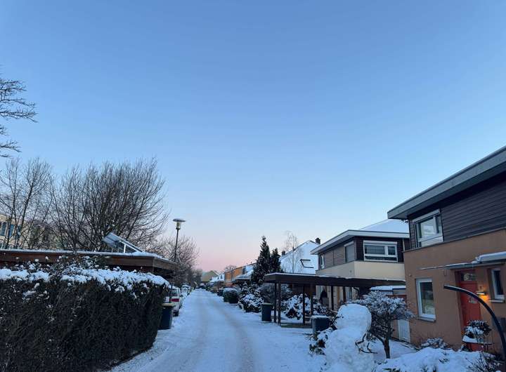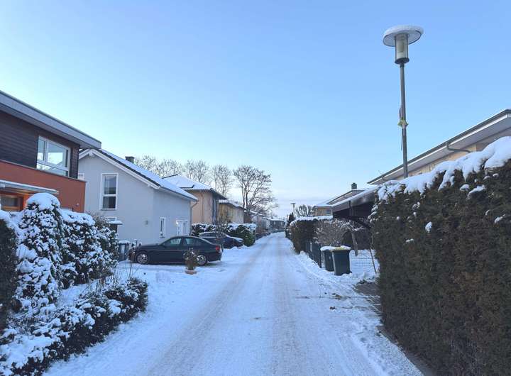 Sehr ruhige Lage in einer verkehrsberuhigten Privatsraße und gute Anbindung an öffentliche Verkehrsmittel: mit der S-Bahn-Station zur Innenstadt.