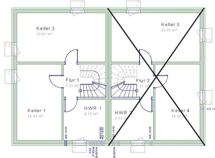Flur, Hauswirtschaftsraum, 2 Kellerräume