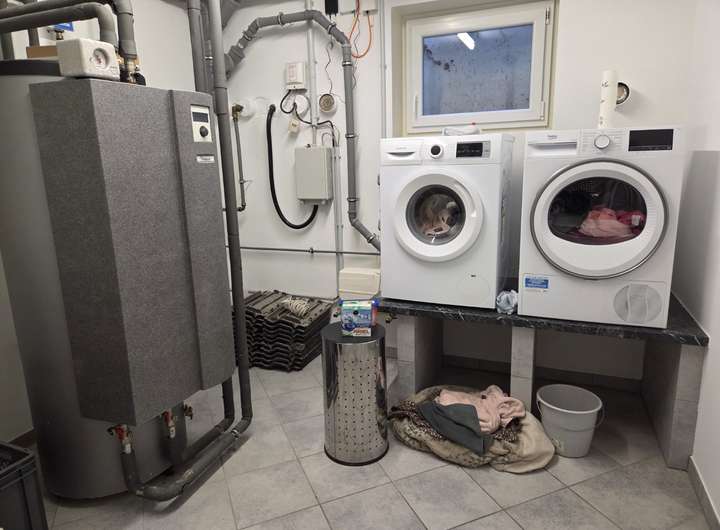 Auch energetisch befindet sich das Haus auf einem weiterhin guten Niveau. Eine moderne Wärmepumpe versorgt das Gebäude mit Warmwasser und speist die Fußbodenheizung.