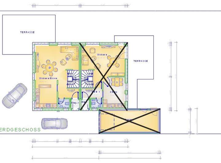 Pkw-Stellplatz, Terrassenbereich, kleine Wiese