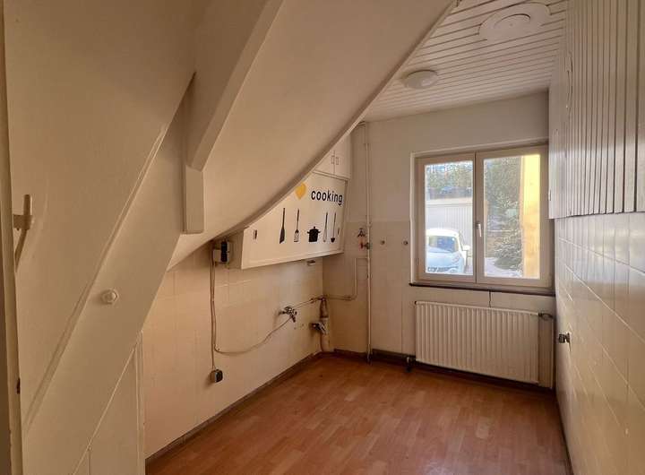 Über den Flurbereich gelangen Sie auch in die Küche. Das Haus wird ohne Einbauküche vermietet. Hier dürfen Sie sich also genau so einrichten, wie Sie es gerne hätten.