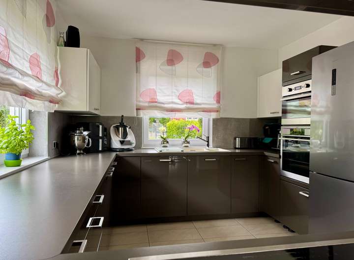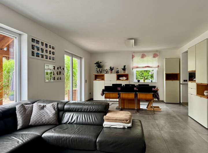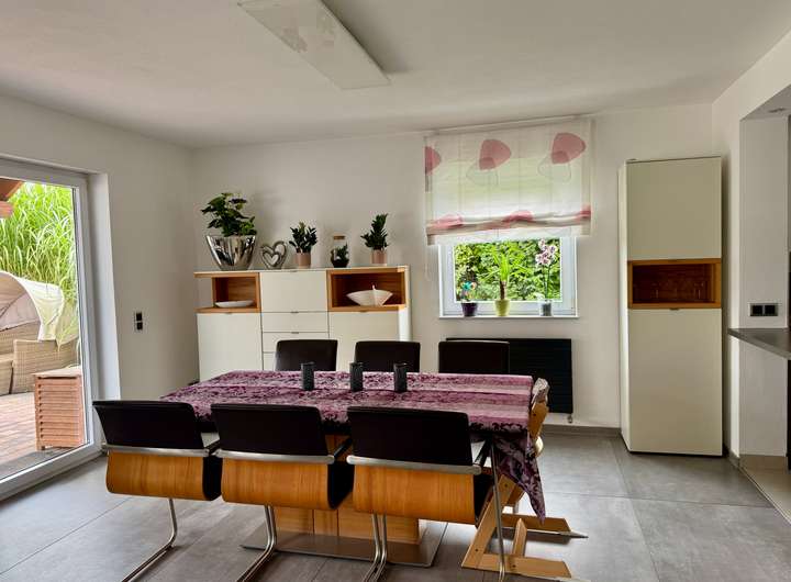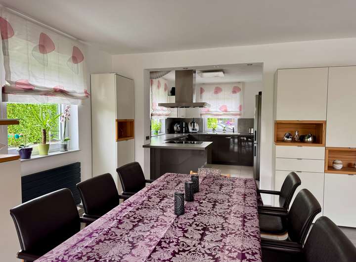 Der Mittelpunkt des Hauses ist die offene und großzügige Küche, die harmonisch in den angrenzenden Wohn- und Essbereich übergeht und zu gemütlichem Beisammensein einlädt. Das Wohn- und Esszimmer wurde 2018 umfassend saniert und modernisiert: