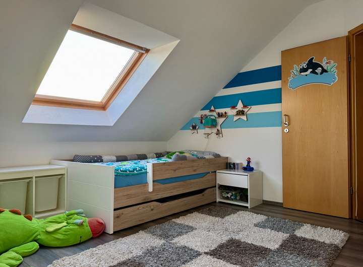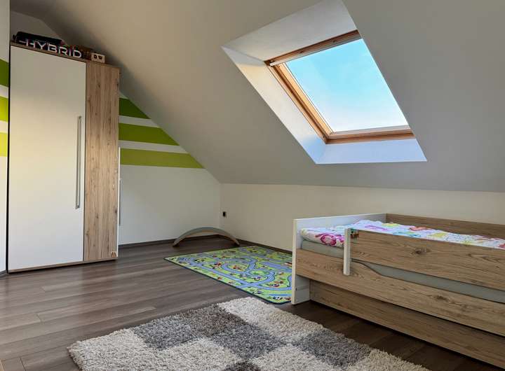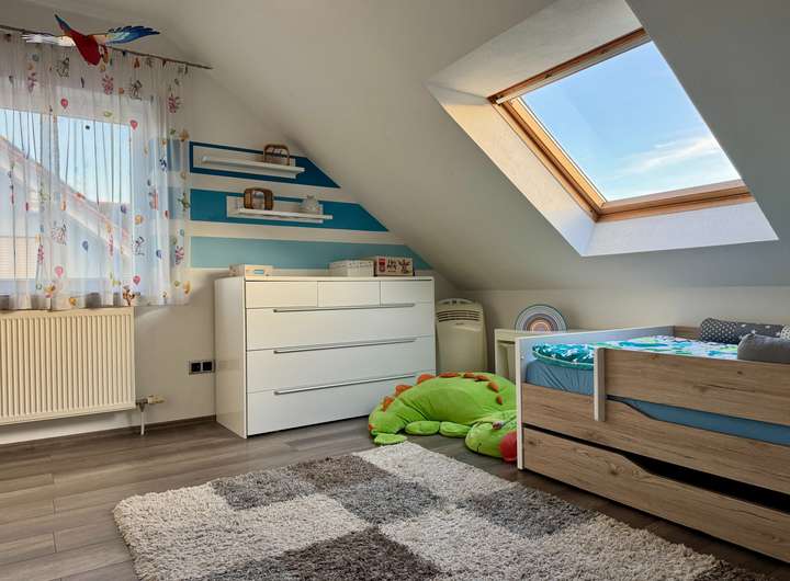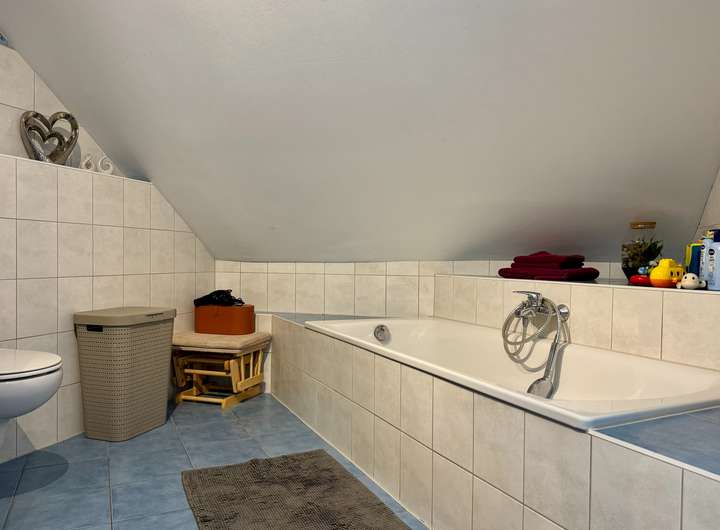Im Dachgeschoss befinden sich drei Schlafzimmer, die ebenfalls 2018 mit hochwertigem Laminat renoviert wurden. Das Tageslichtbad ist mit Badewanne und Dusche ausgestattet.