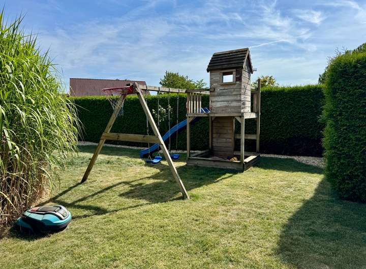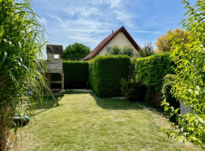 Das Haus, das im Jahr 2023 einen komplett neuen Außenanstrich erhalten hat, steht auf einem 524 m² großen Grundstück, das viel Platz zum Spielen, Entspannen und für gesellige Stunden im Freien bietet.