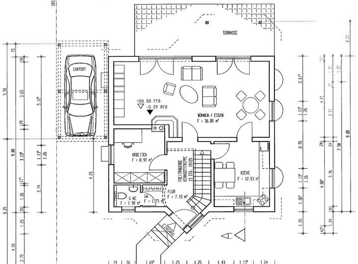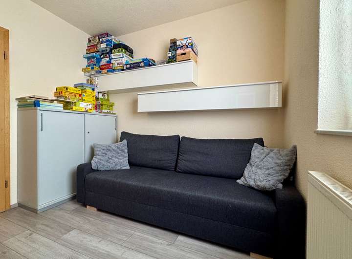 Ergänzt wird das Erdgeschoss durch ein Arbeits- oder Kinderzimmer, ein Gäste-WC sowie den Flur.