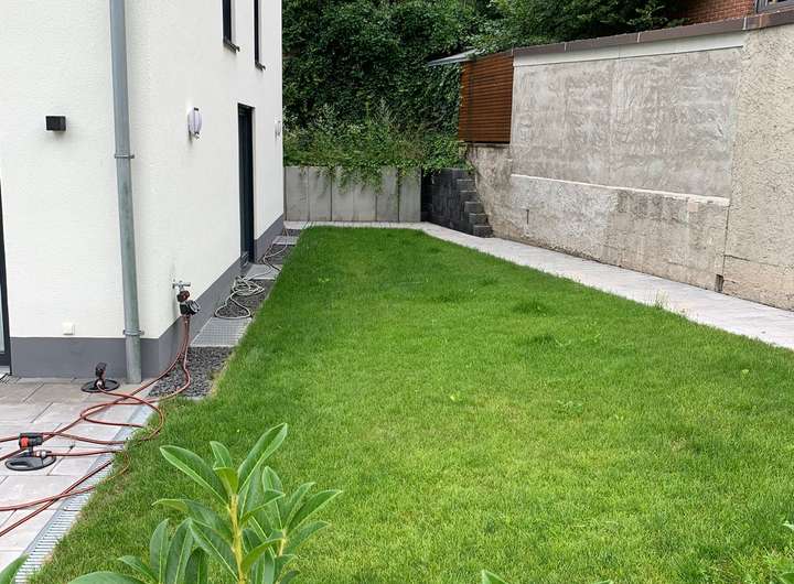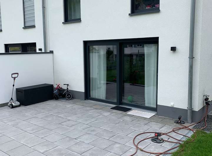 Eine große Terrasse und ein kleiner Garten