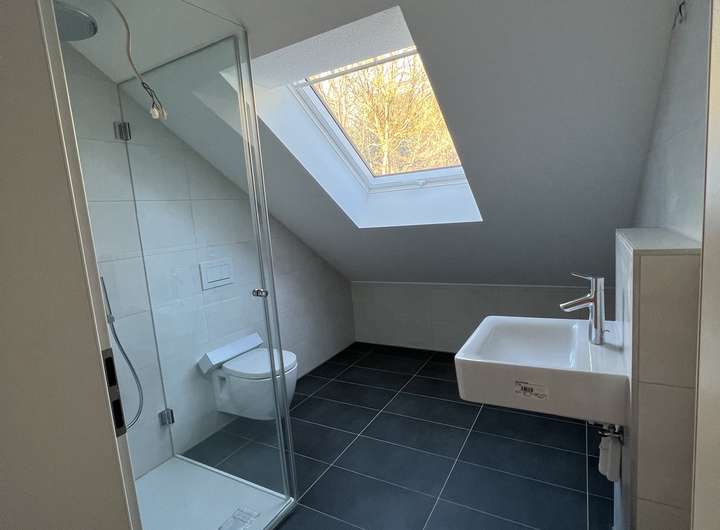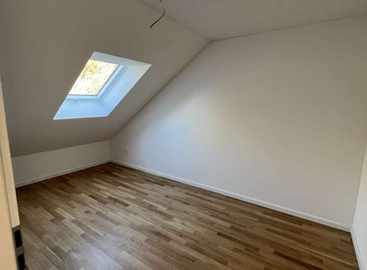Im Dachgeschoss befinden sich 2 Zimmer (z.B. Elternschlafzimmer plus Ankleide) und das Elternbad.