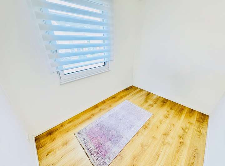 Über die moderne offene Treppe aus Holz und Stahl gelangen Sie ins Obergeschoss, das zwei helle, großzügige Zimmer beherbergt – ideal als Kinderzimmer, Gästezimmer oder Homeoffice. Die großen Fenster sorgen für eine freundliche Atmosphäre, während die warmen Laminatböden für Gemütlichkeit stehen.