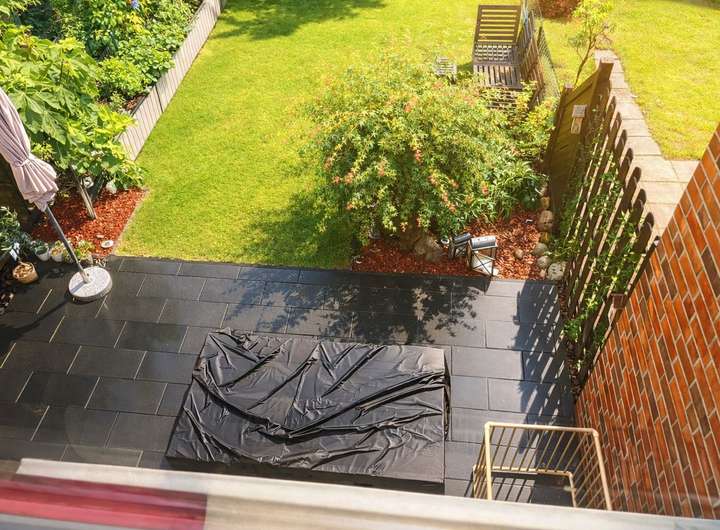 Der ca.120qm große Garten lädt zum Entspannen ein. Die vorhandene Außenmarkise ermöglicht den entsprechenden Sonnenschutz auf der Terrasse.