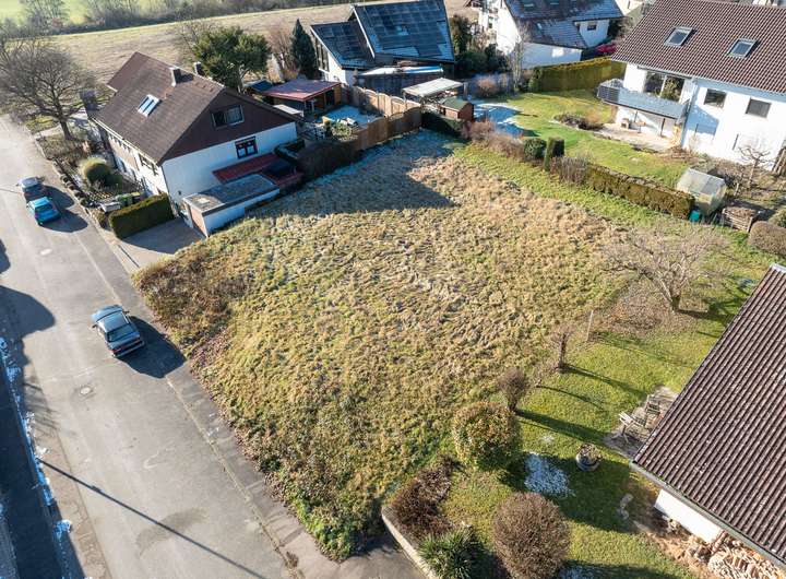 Das Grundstück befindet sich in einem gewachsenen Wohngebiet und grenzt direkt an eine offene Landschaft mit weitläufigen Feldern – ein Standort mit hoher Wohnqualität, Ruhe und Privatsphäre.