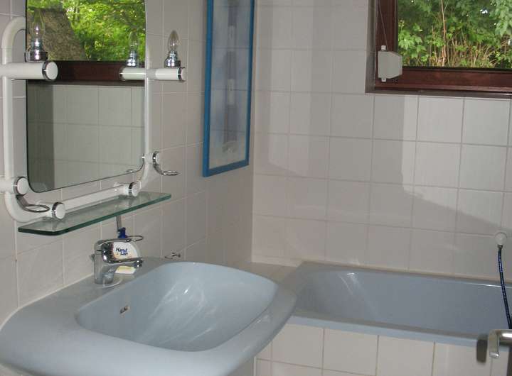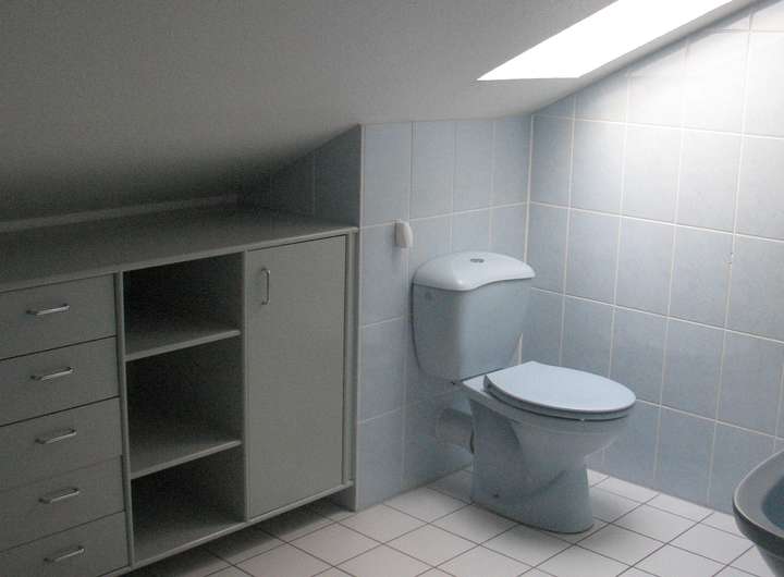 Das Bad verfügt über ein Duschbad, Waschtisch und WC. Die Zimmer und Flur sind mit Laminatböden (Siehe Musterfoto) versehen.