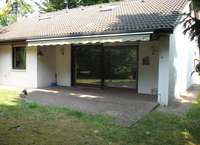 Hervorzuheben ist das großzügige Wohnzimmer (ca. 42 m²) mit Kamin und einer großen zum Teil überdachten Südwest Terrasse. Das Bad verfügt über ein Voll- und Duschbad, Waschtisch und WC sowie Einbauschränke. Die Küche ist mit einer Einbauküche versehen. Die Einbauküche gehört nicht zur Mietsache, sie wird dem Mieter überlassen.